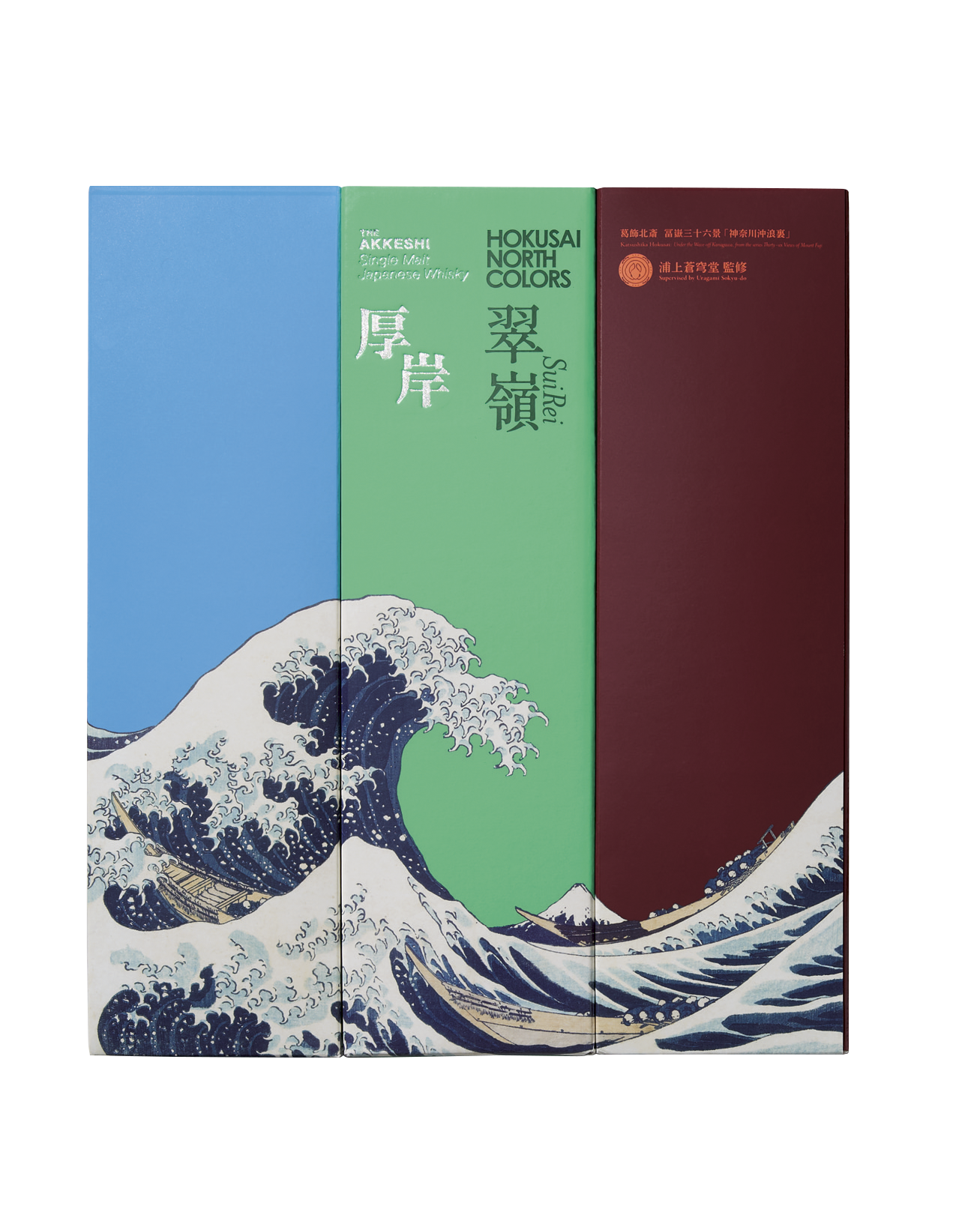 厚岸シングルモルトジャパニーズウイスキー「HOKUSAI NORTH COLORS」シリーズは、──翠嶺(スイレイ)、空翠(クウスイ)、深緋(コキアケ)──の3種からなります。